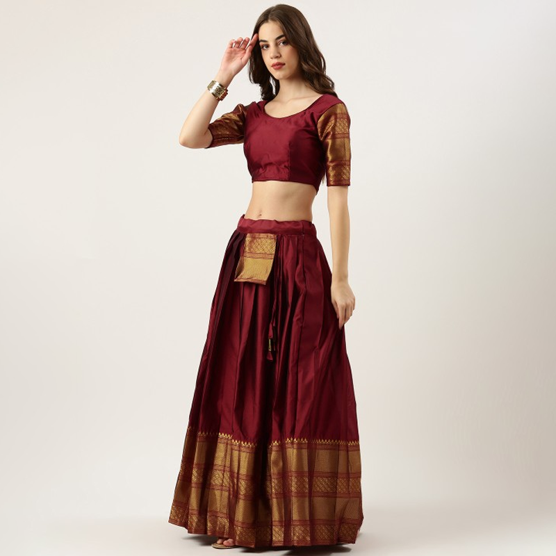 Woven Design Semi-Stitched Lehenga & Unstitched Blouse With Dupatta